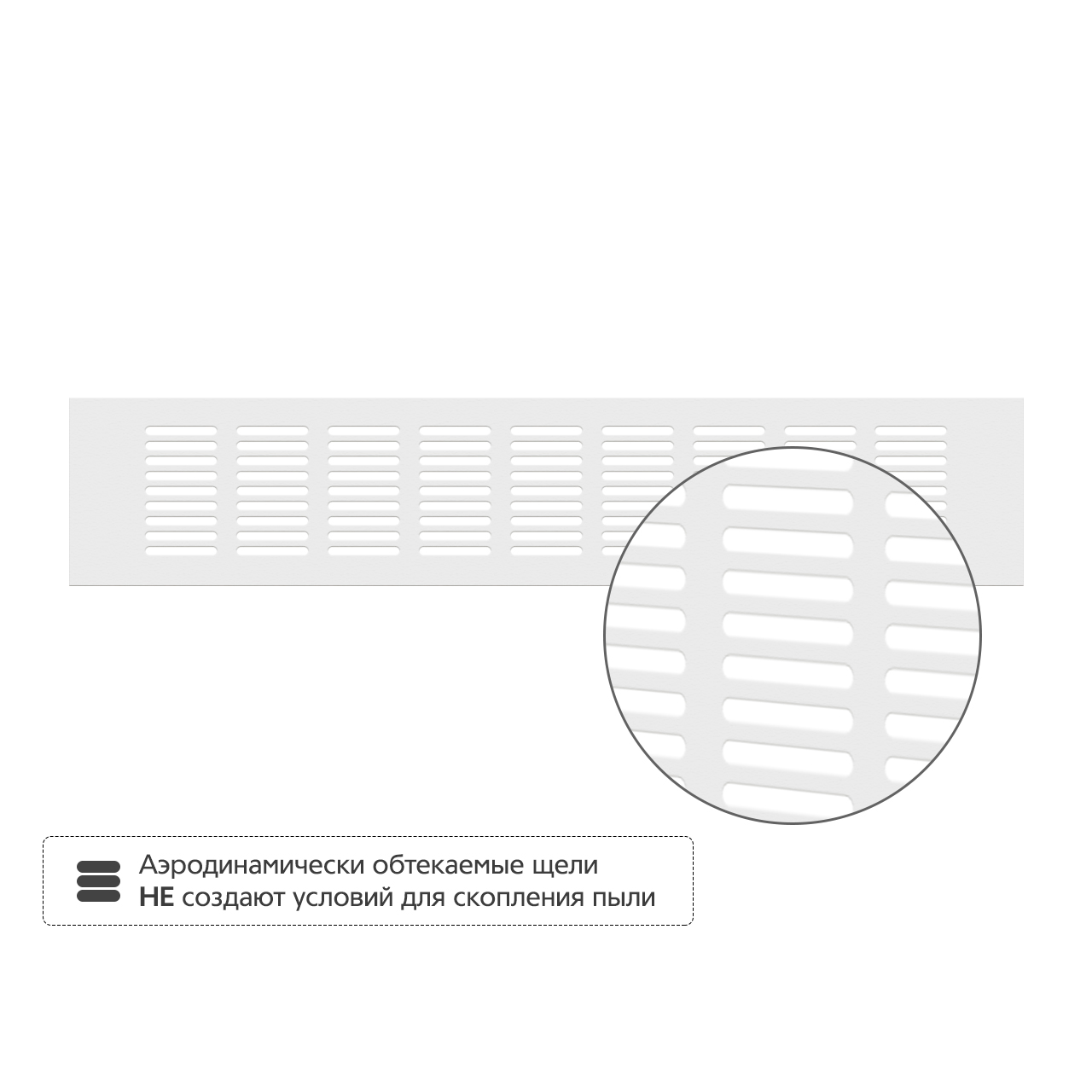 • Аэродинамически обтекаемые щели не создают условий для скопления пыли