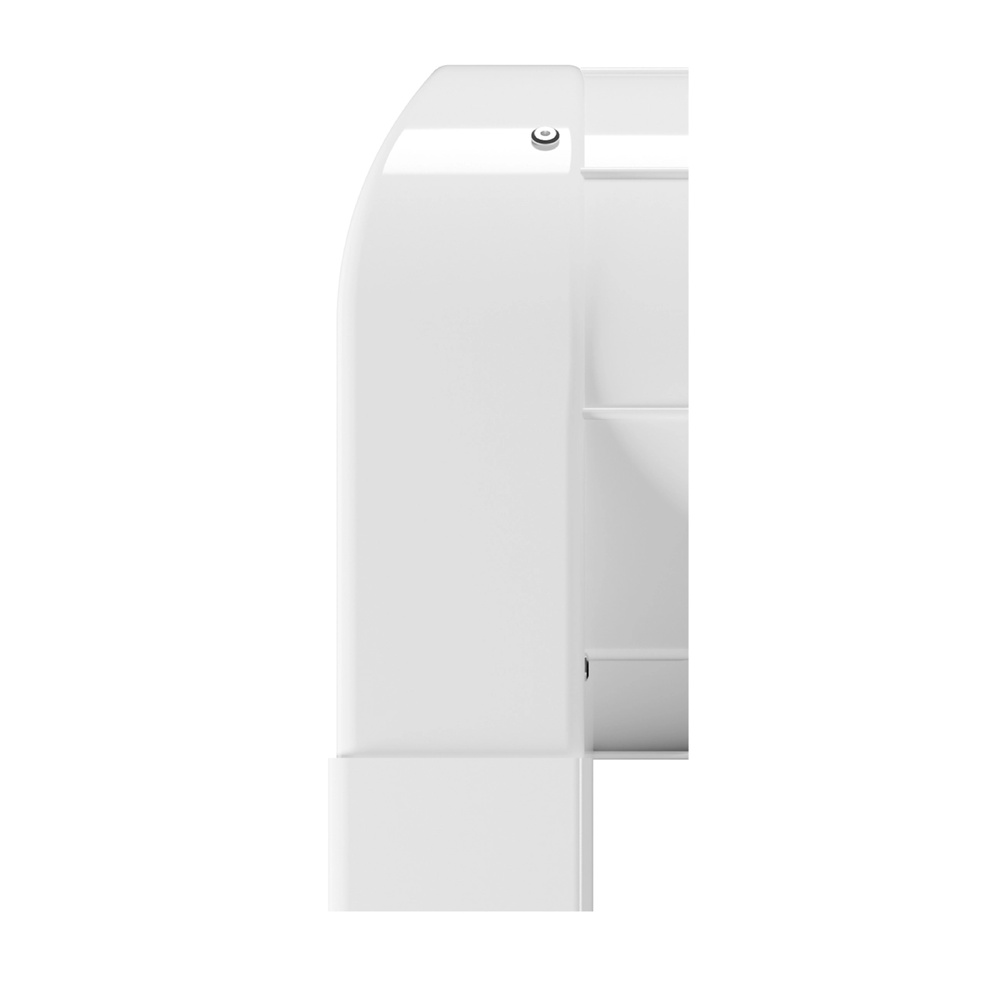 Решетка выполнена из оцинкованной стали толщиной 1,5 мм, что гарантирует прочность конструкции и долгий срок службы. Декоративная часть решетки окрашена белой порошковой краской с текстурой муарового шелка. Благодаря чему декоративная часть решетки гармонично сочетается с белым матовым полотном натяжного потолка, создавая единый стильный образ.